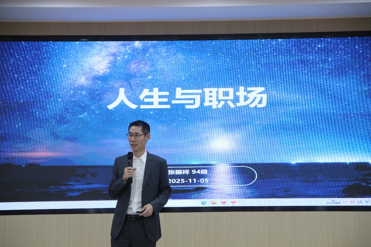 214报告厅举办以“人生与职场”为题的讲座。本次活动邀请原华为技术合作部副总裁张振祥老师为学生们带来一场关于人生规划的经验分享。