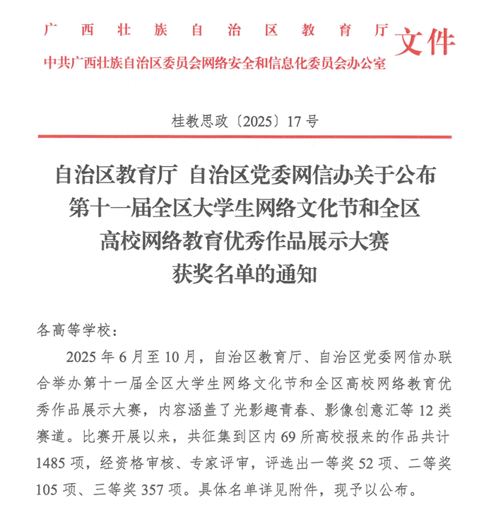 近日,自治区教育厅与党委网信办公布第十一届全区大学生网络文化节和网络教育优秀作品展示活动获奖名单。寸止挑战